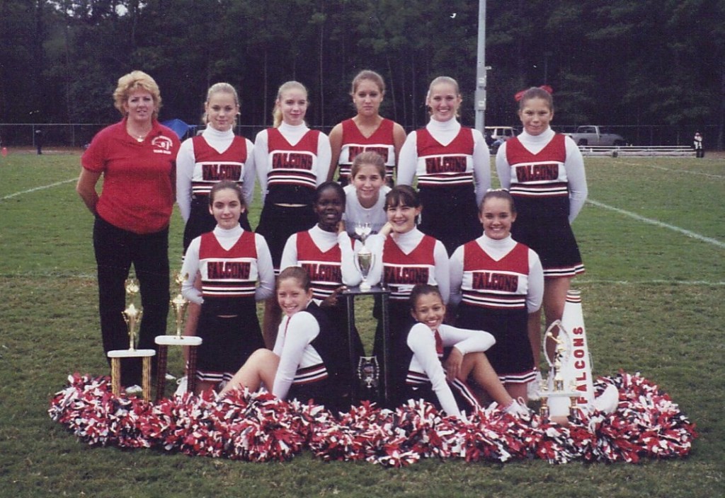 I cheered for a recreational league in 8th and 9th grade, the Sertoma Falcon. I was cheer captain my second year while my mom became the cheer mom. We won our category at Carowinds that year.